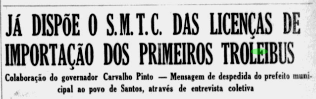 Embarcado ontem o troleibus solicitado pro empréstimo ao governo da Guanabara. A Tribuna. Santos. 25 janeiro 1963. p.22.