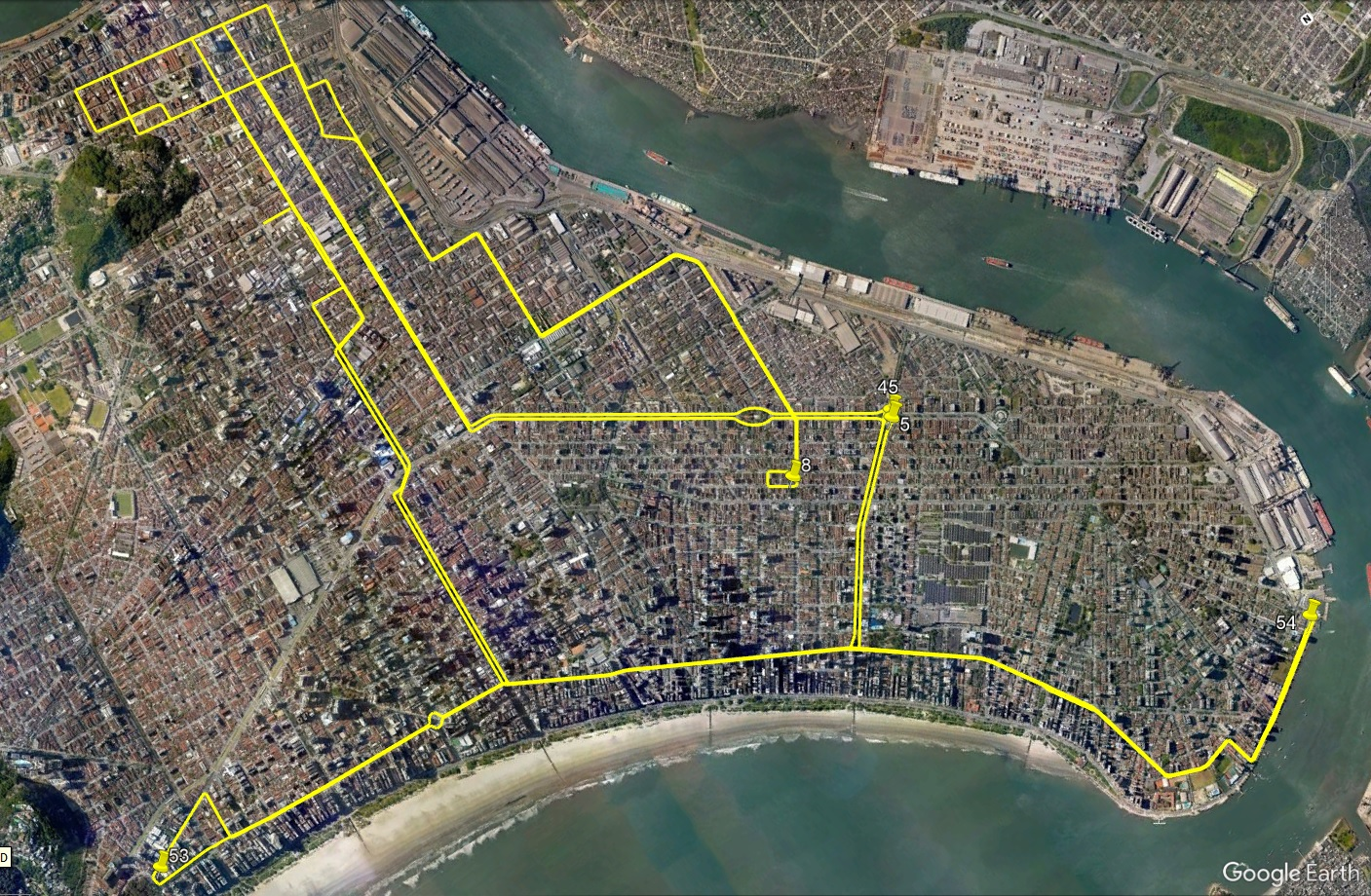 Mapa - Rede dos Trólebus de Santos no Google Maps